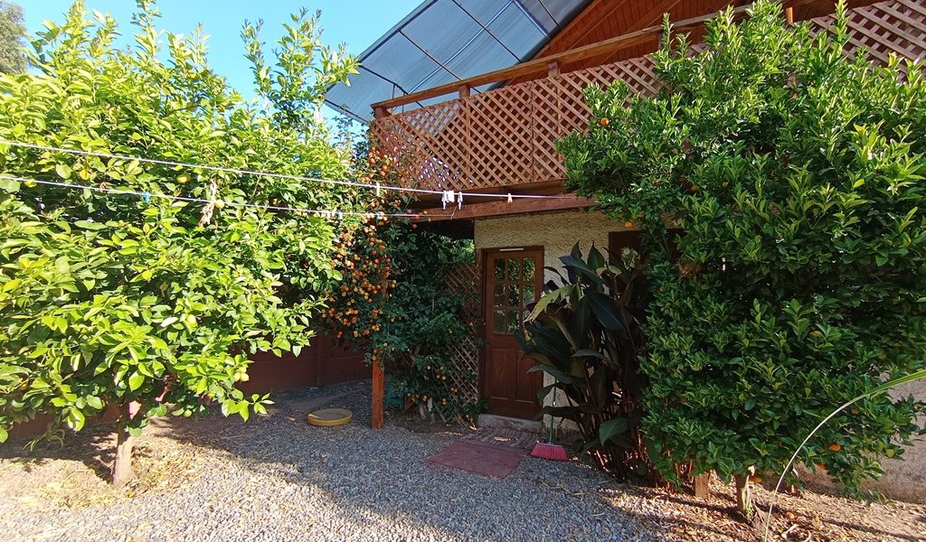 Terreno plano de 500m2. Árboles frutales y ornamentales. Pandereta de cemento, portón de madera automático.