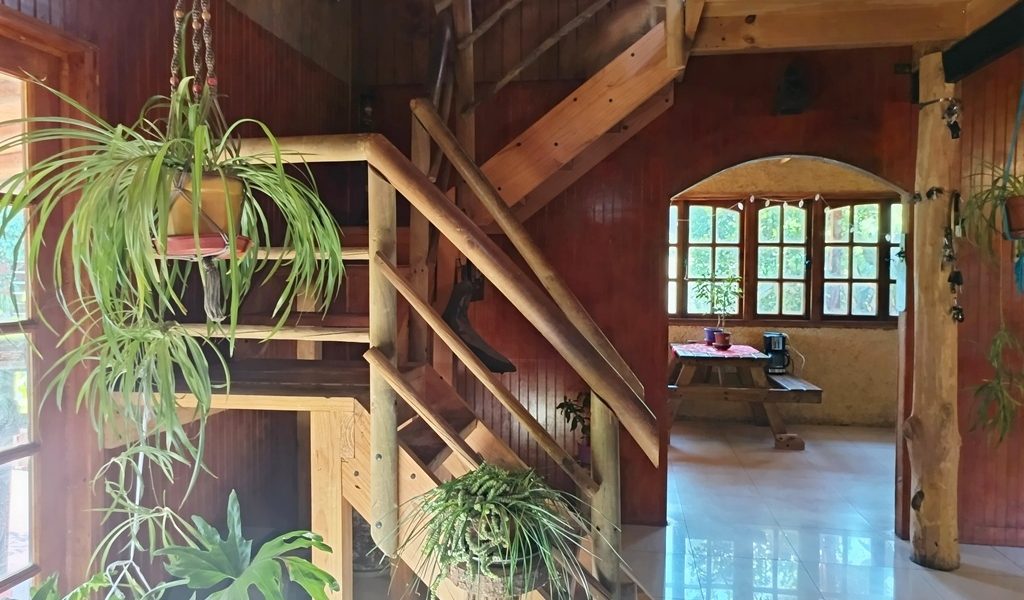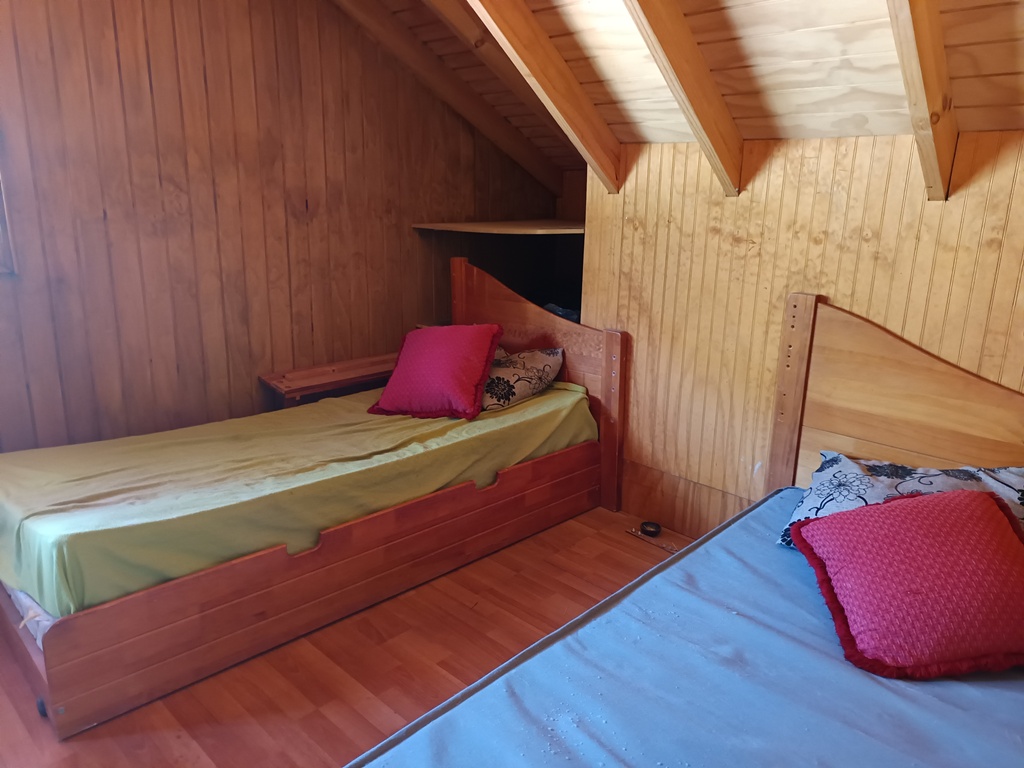Primer piso living comedor, amplia cocina con comedor de diario, 1 dormitorio principal con salida a la terraza, 1 baño completo con tina de hidromasaje. Escalera de madera. Segundo piso gran dormitorio en suite, estar y terraza techada. Ventanas de madera.